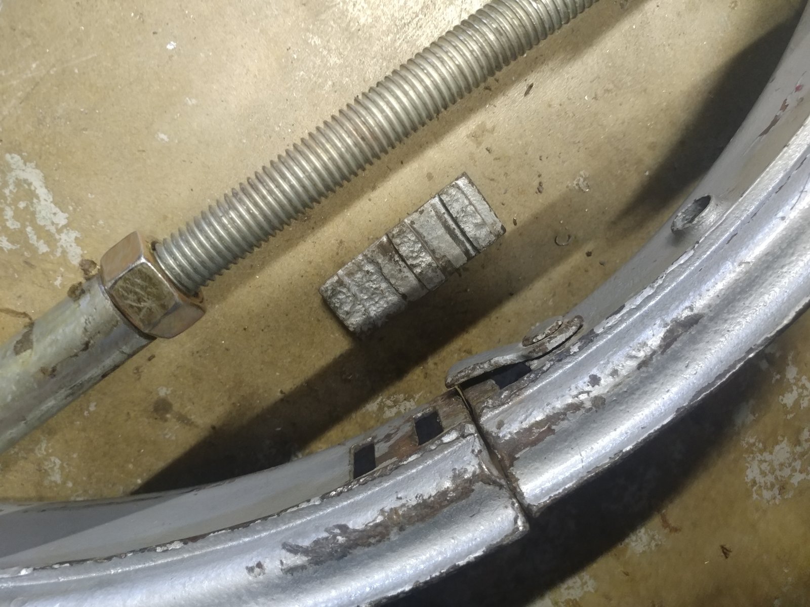 The piece of the rim clip/lock is supposed to be permanently attached. Two rectangular bumps on the one side of the piece should fit into two rectangular holes on one end of the round rim. Originally, these were neither riveted or welded into place. They were put into place and the rectangular "bumps" were staked (hammered, punched, sort of like a rivet?) on the tube side of the rim. That was all that held them in place. Once they work loose, and fall off, the easy fix is to weld (or braze) the clip in place. Sometimes a little grinding is necessary to fit it into place. Once everything is together properly, the tire mounted and rim expanded and snapped in place, the little lever/handle on the other end of the circular rim can be turned (doesn't move much!) to safety lock the clip and hold it until aired up and mounted on the wheel.
