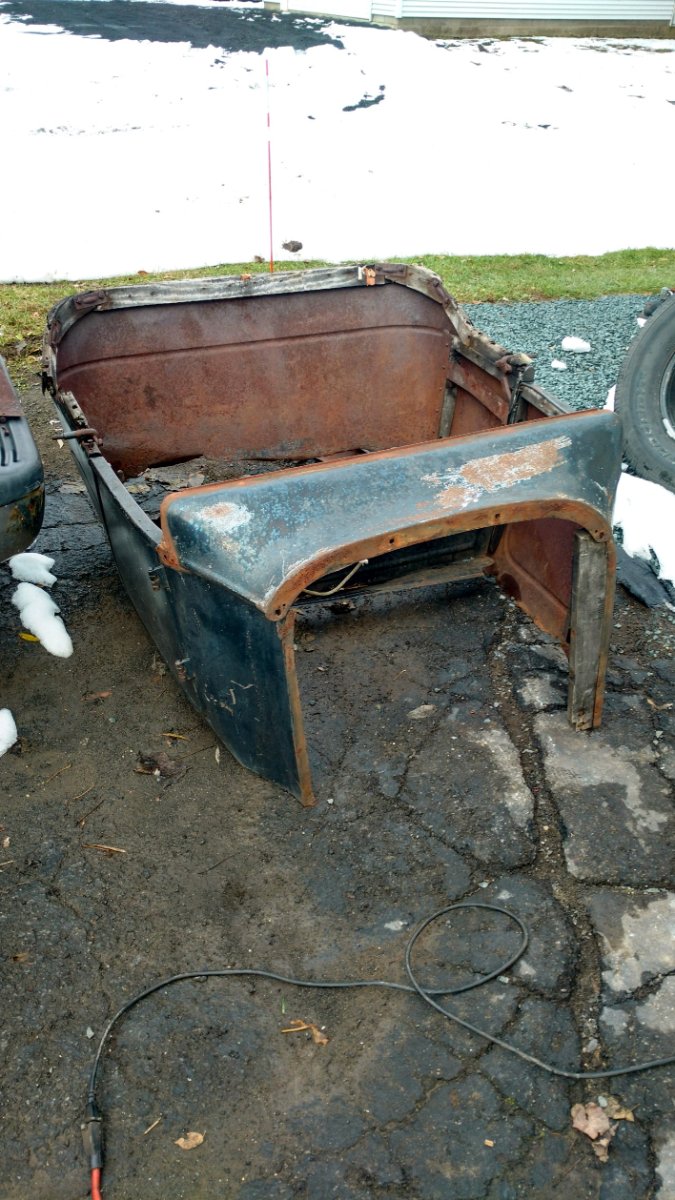 Parts gathered (and thus planned), include complete A steering from column to front axle, T engine with '28 Chevy head, 19" A wheels, '24 cut off touring body. Frame has 5" drop front and rear, and is shortened 4" in wheelbase. More of a Gow Job than a speedster though.