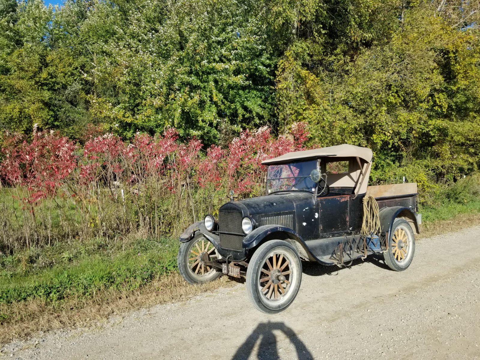 Sunny and 63° today in Michigan's Thumb. The color is still good so the wife, dog and I went for a 40 mile tour of some of the nicer back roads. I'm trying to get as much in as possible before the white stuff puts an end to my Model T driving for this year.