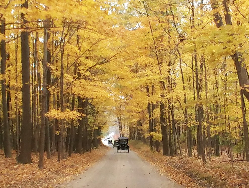 Although I am new to Model T's, I volunteered to lead the Michigan Casual T's annual color tour after the previous sponsors had to cancel. I moved it to the Almont, Michigan area where I grew up. It was short notice and Tropical Storm Olga was threatening rain, but we still had seven Model T's, a Model A and three modern cars show up for a total of around 30 people. The tour went well, the color was awesome, lunch delicious and no rain until we were back at the parking area loading up. In short, it was fun, even if a bit cool.