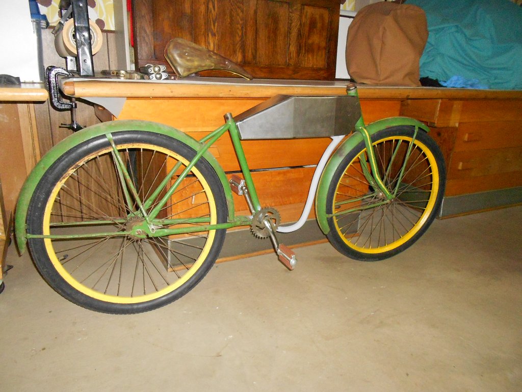 My non Ford vehicle project was a bicycle. A friend gave me a 1950's J C Higgins sears bike to play with. I rebuilt it into a fun look alike toy I have always wanted but out of my league. Les
