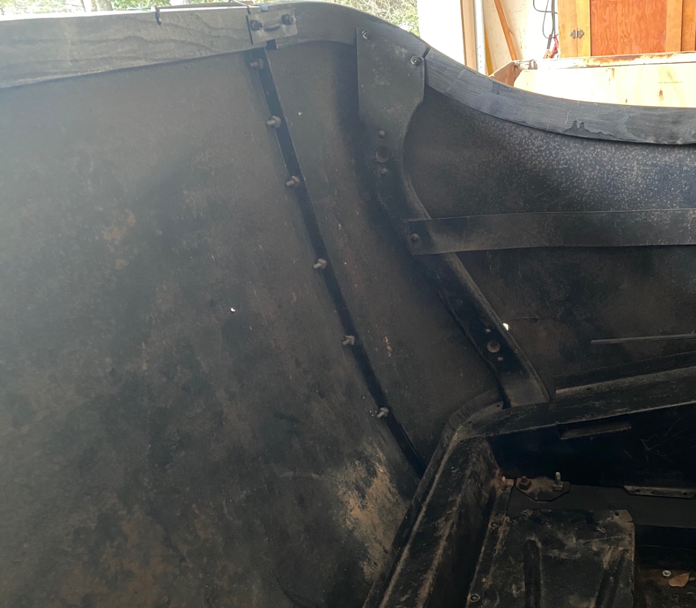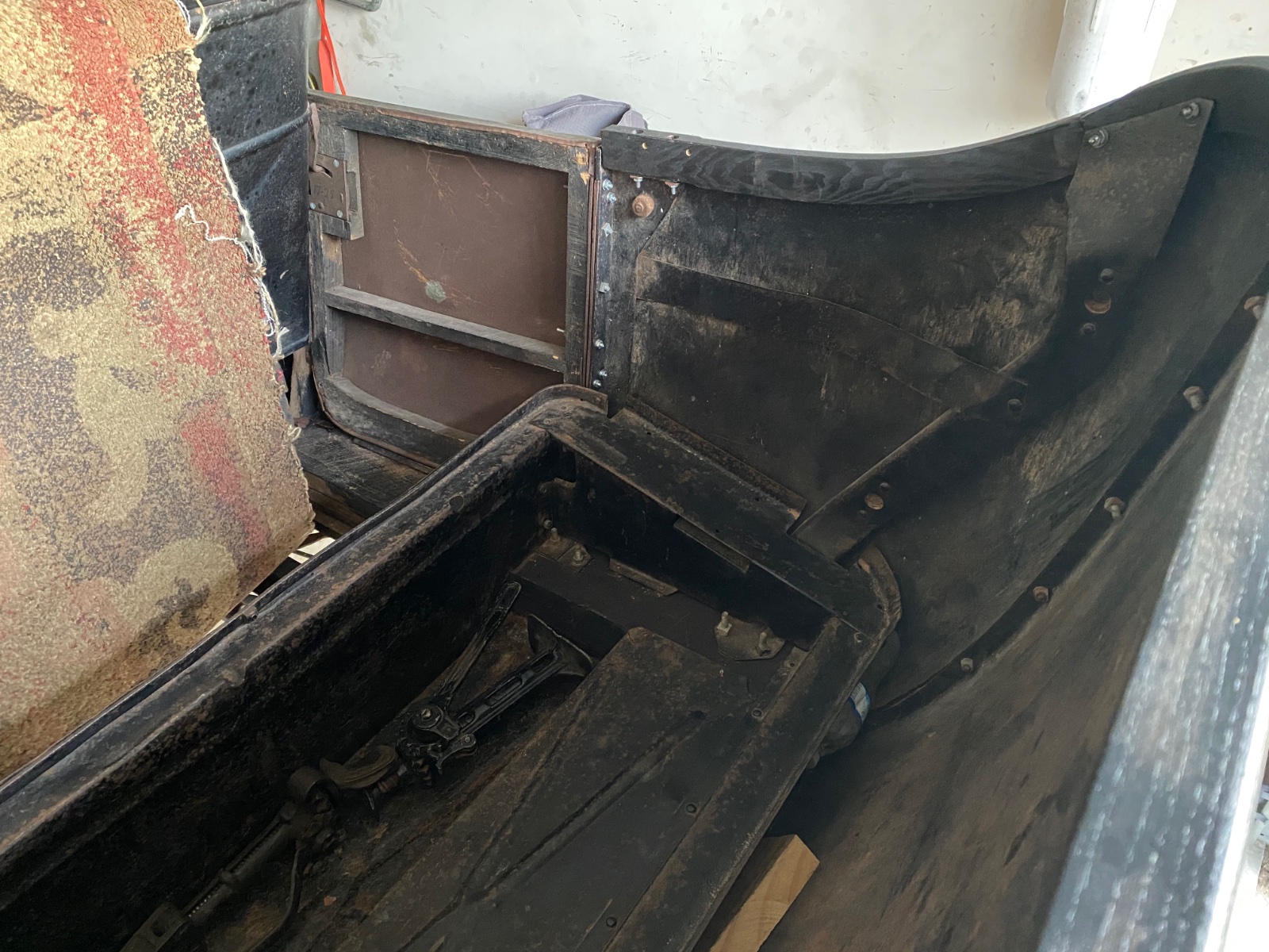 Don, thank you for taking the time to post your photos. The 1923 Touring I have has the body in pieces and the photos should help me reassemble, I have to post pictures of 2 styles of brackets that came in pairs, with one pair slightly curved angle sheet about 6 inches long with 4 holes on each side, the others about a foot long each straight angle with about 4 holes on each side, they sides about 3/4". I have to get photos. George
