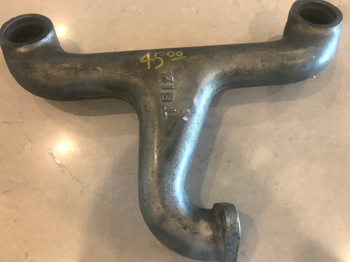 I bought an aluminum intake manifold at Hershey I’ve never seen before. The 1909-10 manifold was the dog leg style with the part number 512 cast in the back of the riser.