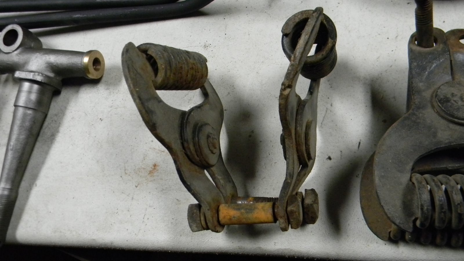 Believe those scissor action shocks are the W-X brand. On the market about 1915, but rarely seen on T's today, Hasslers being the preferred spring shock.