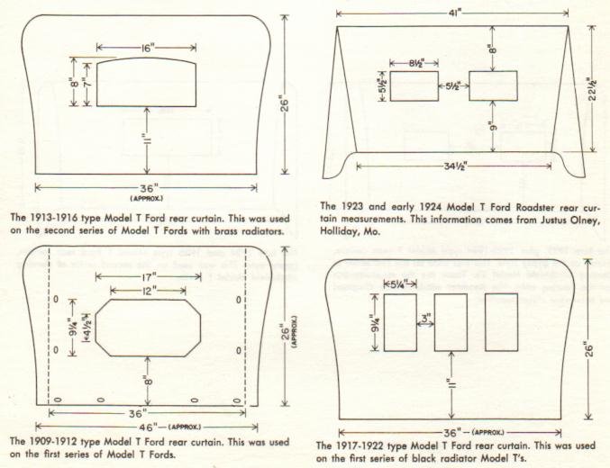 I'm collecting data for rear windows for 1913-1927 tourings and roadsters. I'm only interested in cars that have the original tops supplied by Ford. I need the size of the window, (light), and the spacing between the windows from 17-21, and 22-24. For the purists out there, if you have ever been anywhere where there is a group of Model T's, it's almost disgusting to see the variations of T's with the incorrect placement of windows. I would like to help change that.