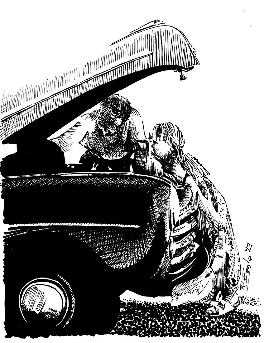 This time of year reminds me of the sketch I did for a nice lady in Florida. She wanted something with an old car for her Christmas card.