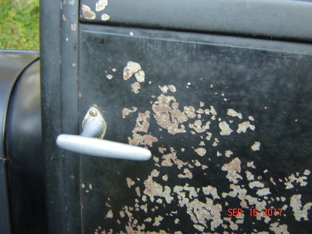 With a poorly stored car, it's by far more common for rust to simply bloom through original factory paint than the paint to delaminate or peel regardless if the original factory paint is baked (fenders, splash shields, running boards, hood and radiator shell) or non-baked body paint.
