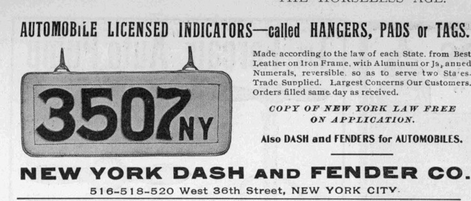Since the owner was responsible for figuring out how to display the registration on the back of his car, there was no uniform method for doing this. If they did decide to go with a leather pad with aluminum numbers, they could make something up themselves or buy a pad and the numbers from a vendor to complete the plate themselves or provide their registration number to a vendor who would make up a plate for them, etc.