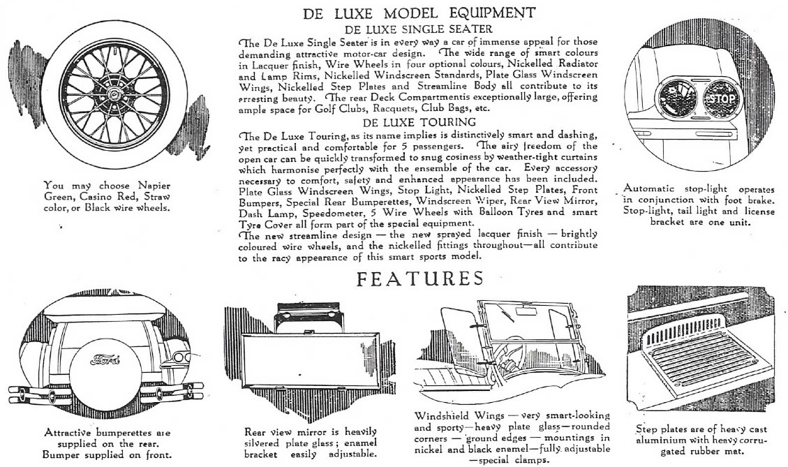 My 26 still has a few of the Delux fittings, tail light, mirror and rubber side steps. Still unrestored , 74,000 miles and original paper work from dealership about 50miles from the Australian Ford factory in Geelong.