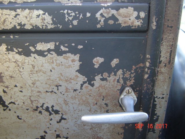 I have read some previous MTFCA threads about the paints & primer and primers used on various parts. It appears that there is gray primer where the paint flaked off. So some restoration may have been done when it was last stored 50 years ago.