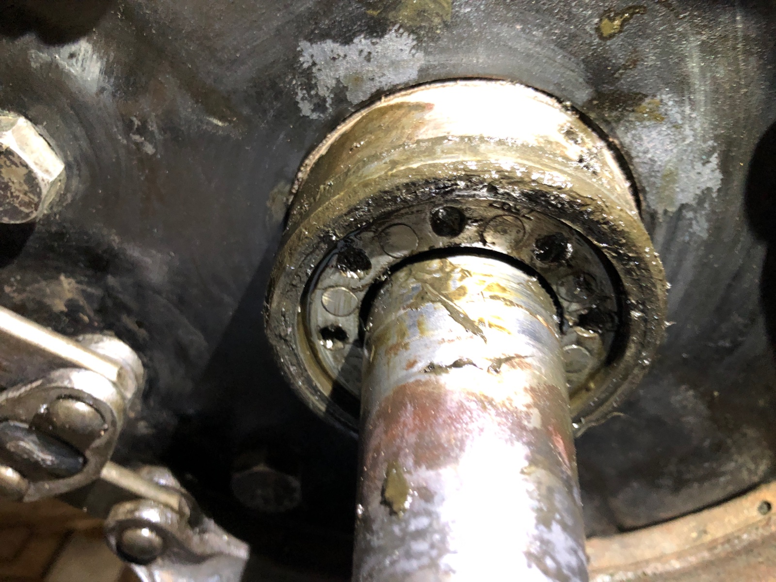 4. Each side of that rear end has THREE seals At the outer bearing there's an inside grease seal and outside grease seal. Also, there is an oil seal inside near the differential just outboard of the inner ball bearing. The first tow can be replaced without disassembling the whole rear end. To replace the third one yo must disassemble the entire unit. From the look of things you need to change them all. I suggest a new style neoprene seal for the inner grease seal, and felt for the outside grease seal as well as felt for the inner oil seal.