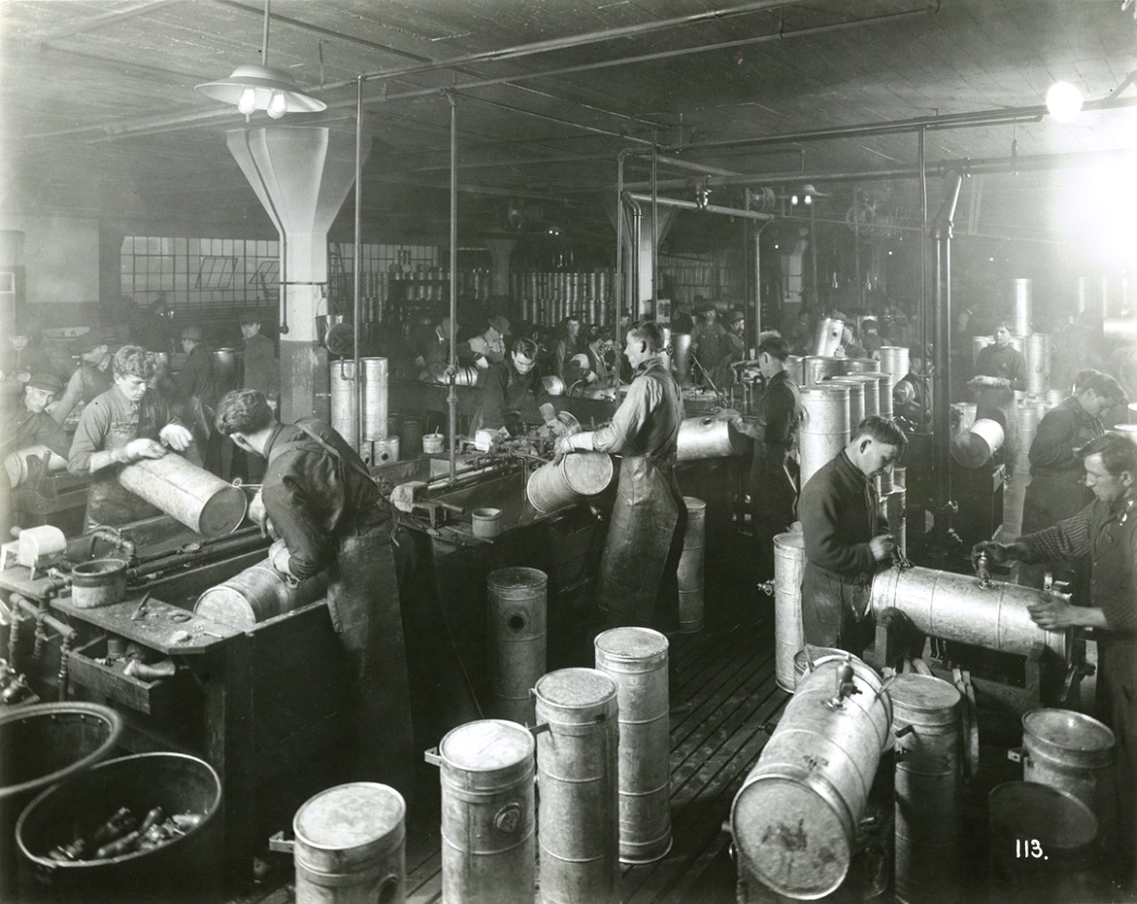 Factory photos good ref. Early sediment bulbs cast bronze, by 1916 cast iron, no finish on them. Just naked