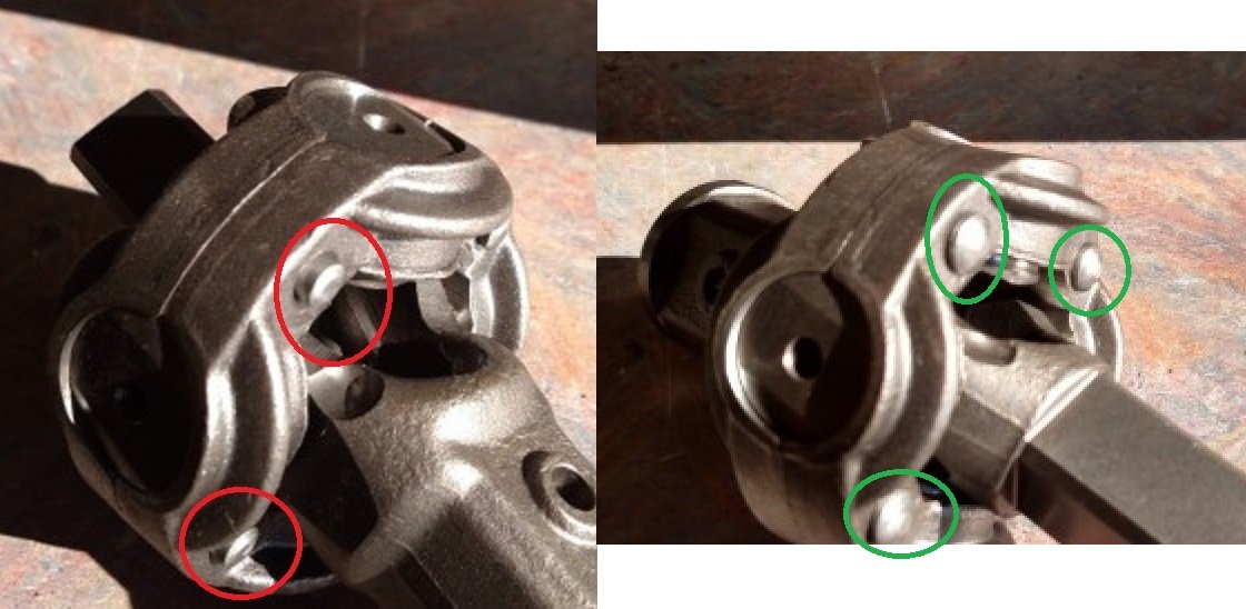 I looked at my new Taiwan-made u-joint and the rivets are barely peened over. I'm afraid to use it as-is. The heads on 3 rivets are not seated completely. I can insert a feeler gauge of .011" under some. Is this what is being made these days? I will probably send it back unless I can find a way to set the rivets correctly. I know that tightening rivets in an old u-joint is ill advised. Have any of you seen this or used one of these?