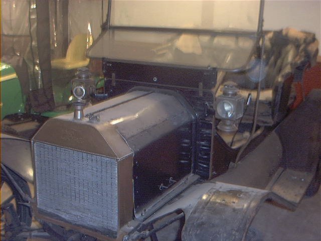 Hi, it is a 1914 coil box which will be changed in time. It is just sitting there unattached, makes it look a little more slanted. It also came with later black headlights, not installed. If you look close you might see some nickel hubcaps. I have only owned it a few hours and have not had time to make everything correct yet, the most noticeable things like the headlights and horn I want to get done first. I think the guy that owned it was looking for the parts but he died 40 years ago. I feel lucky just to get it. Thanks, Bob.