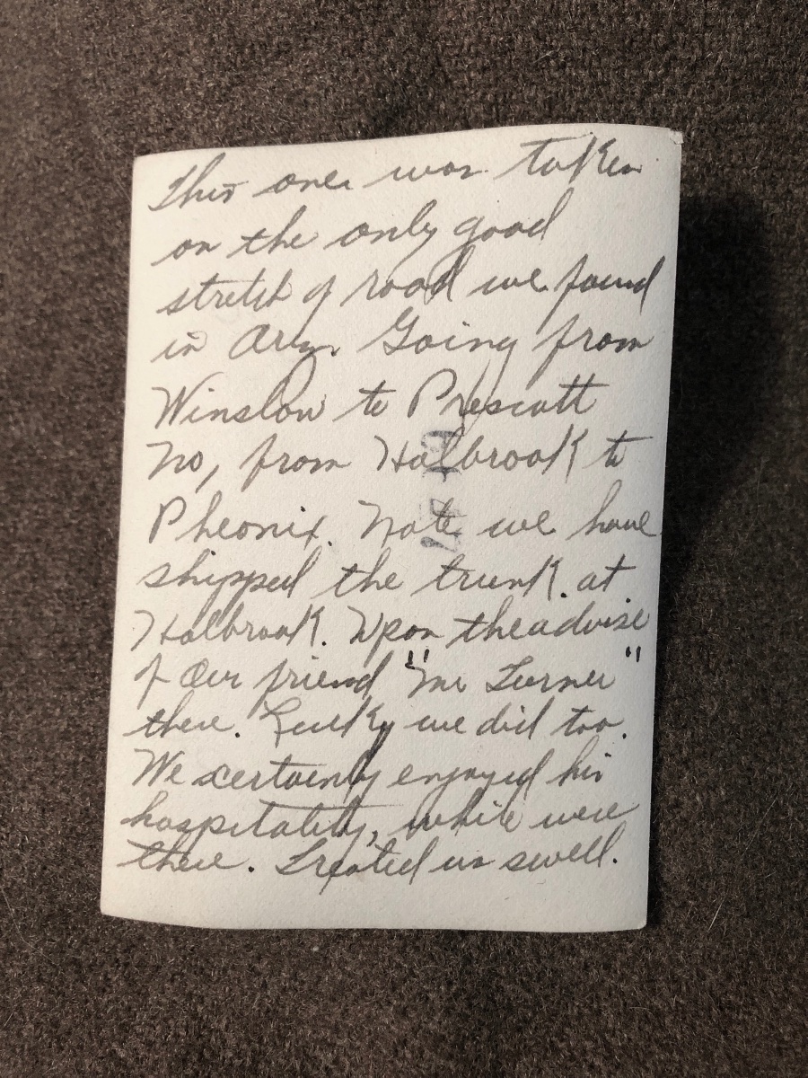 Trips like this were big and memorable events to the folks involved. In 1929 my mom and her sister, brother, and sister-in-law drove out to Arizona to bring the other two sisters home from summer school in Flagstaff. They talked about that trip the rest of their lives.