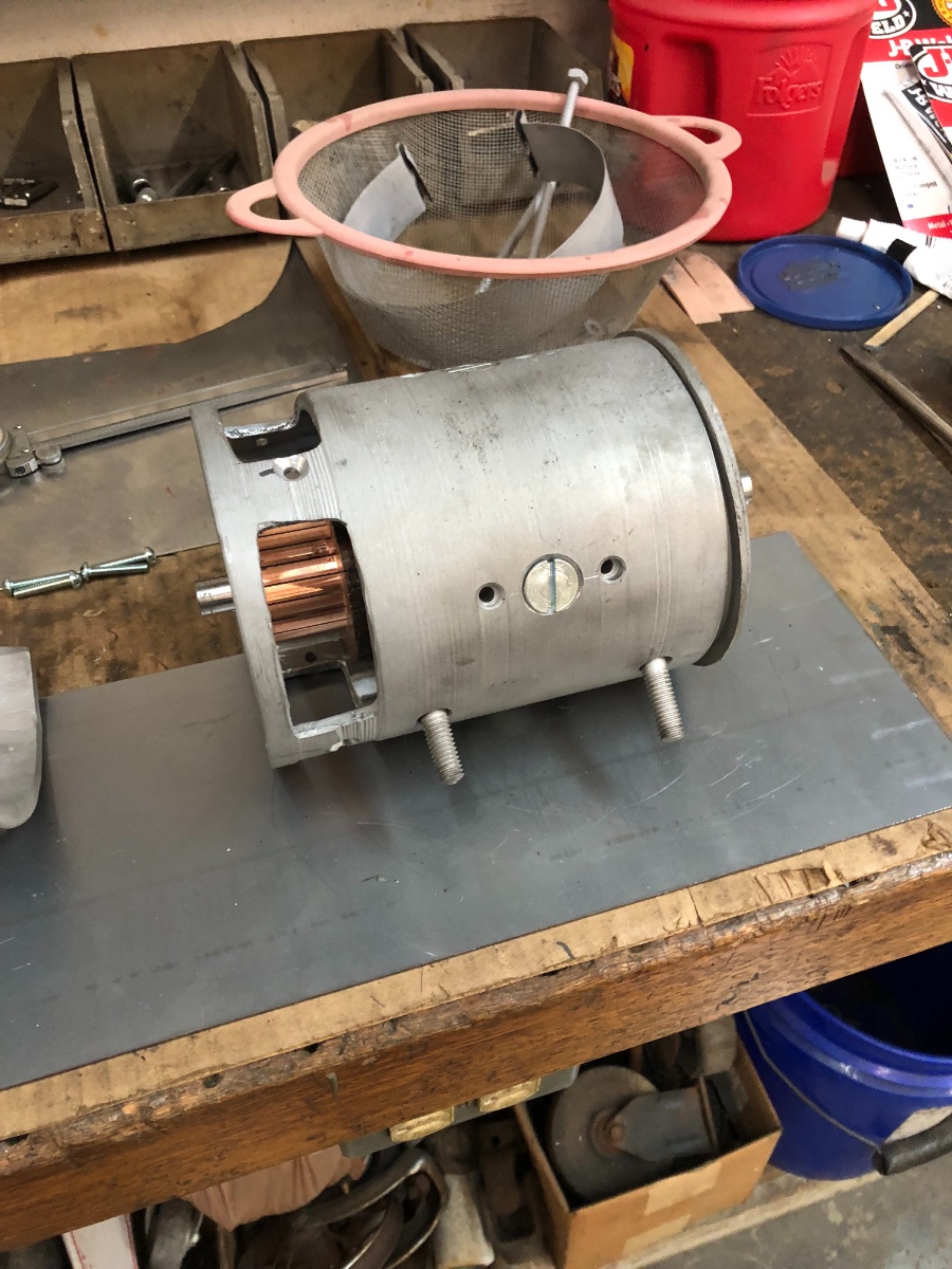 The problem is the armature is shot, the fields and brushes have been messed with and it is an odd size. What to do to make it work? Huuuummmmm!