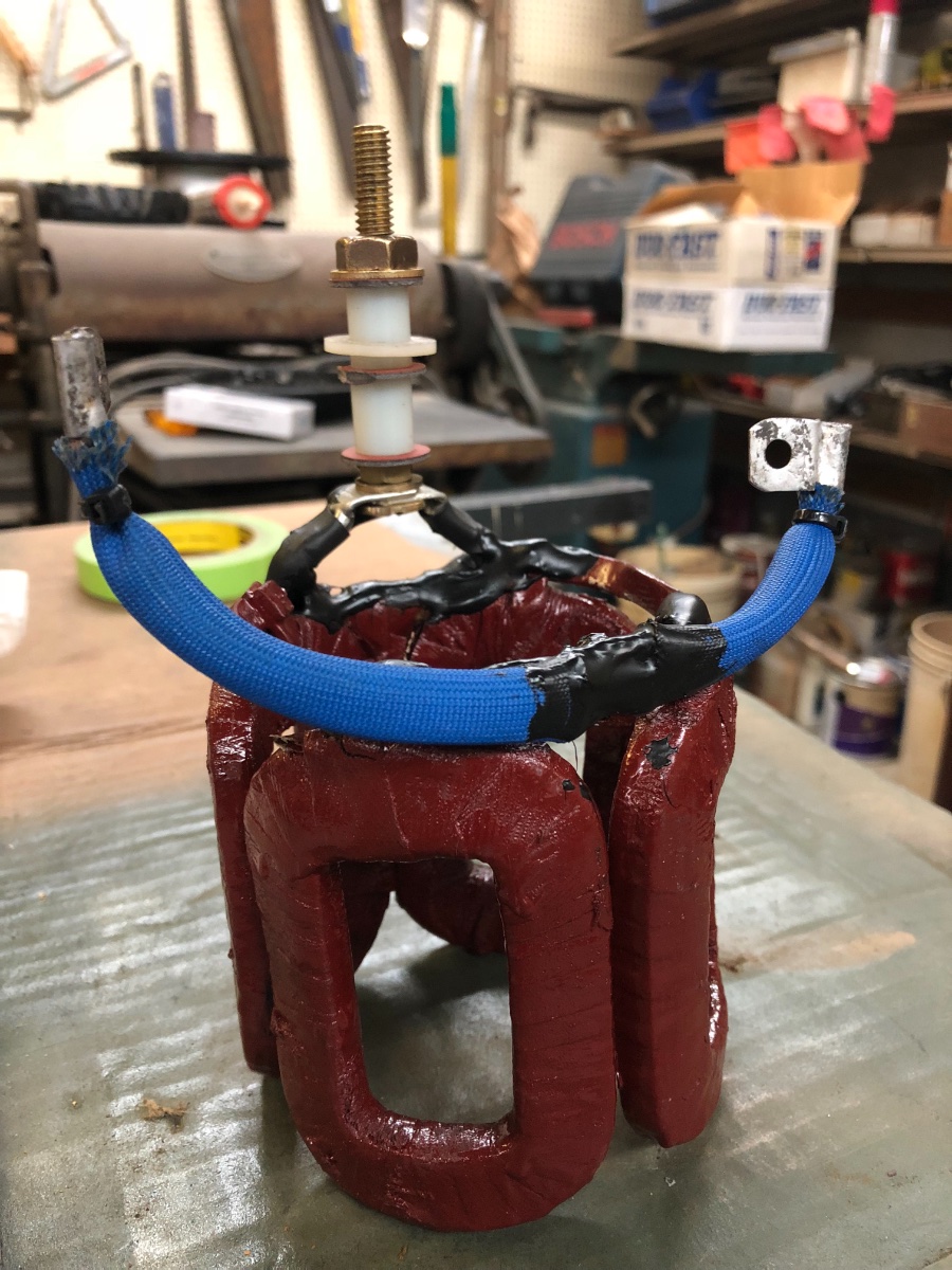 After all the final machine work and insulating, a quick pre-fit went well. It is a little tight as far as clearances/access but will work. This application requires a CW rotation as viewed from the rear of the case, no problem, North and South reversal by means of changing attachment of the feed post and brushes. You have to do the same thing if any of you are converting to 12 volts using a field coil from a 1956-1996 Ford starter.