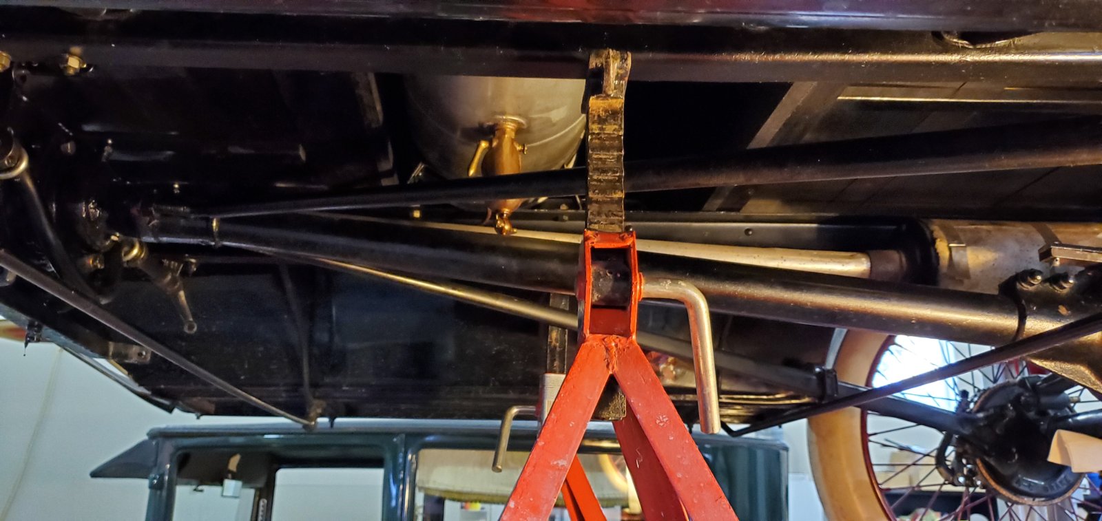 When I removed the rear axle in Betsy to install her Ruckstell, I made a cross bar that spanned the rear frame rails and supported the car with it. If you decide to make a cross bar, make it beefier than mine, mine worked OK but was a bit saggy.