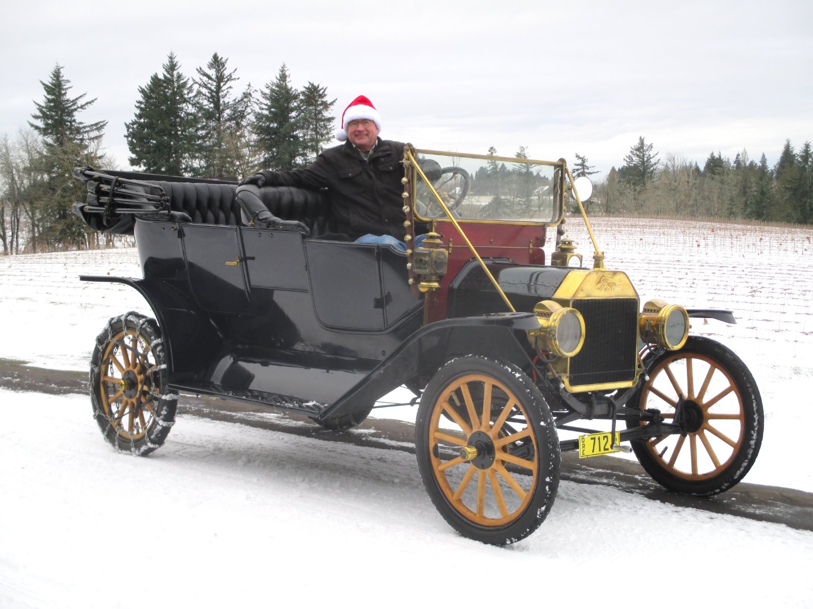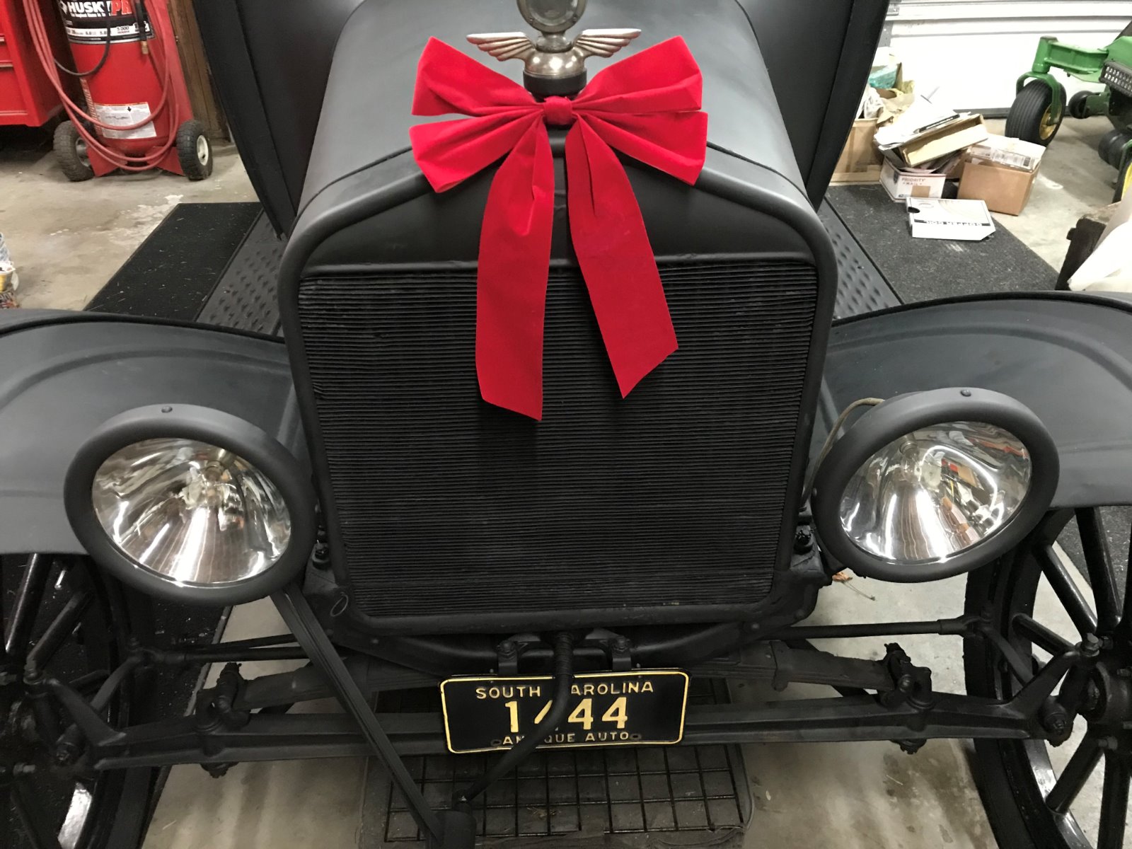 My son and I decided to take a Christmas Eve ride in the T today...With my Santa hat on my head we set out.. the weather was so nice here in York County Pennsylvania that our short ride turned into a long one. Driving down the back roads of this rural country one could easily believe it was 1919 . The old farms and gravel roads made it feel as if we stepped back in time... I didn’t want it to end... but just like that it did when my radiator sprung a leak through a pop rivet in the bottom tank! Fortunately we were not far from home... my poor wife with a pie in the oven brought us a few gallons of water and we made it home.. That all just made the trip that much more memorable.. A couple pics of the T in front of an old building ... Merry Christmas everyone!!!