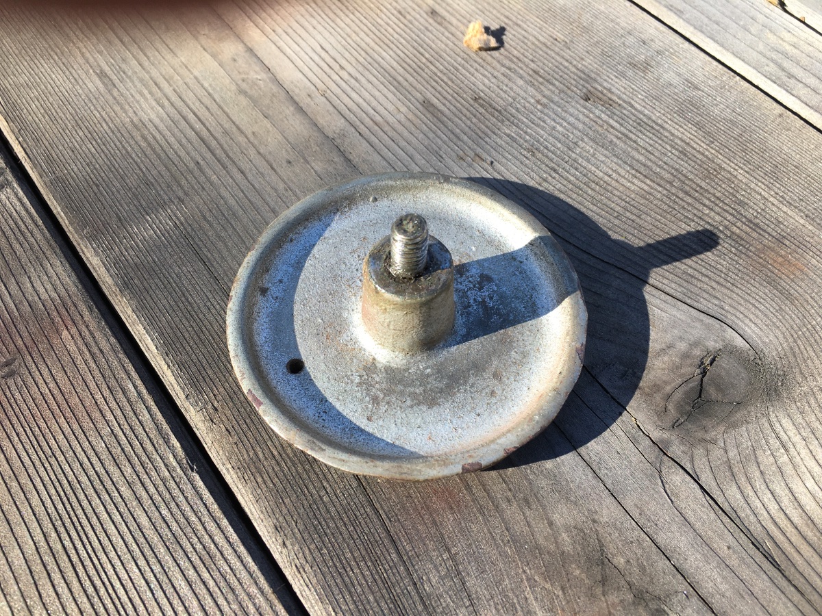 It is built with scraps from around the house and an old chevy hubcap (possibly a 490 ??)