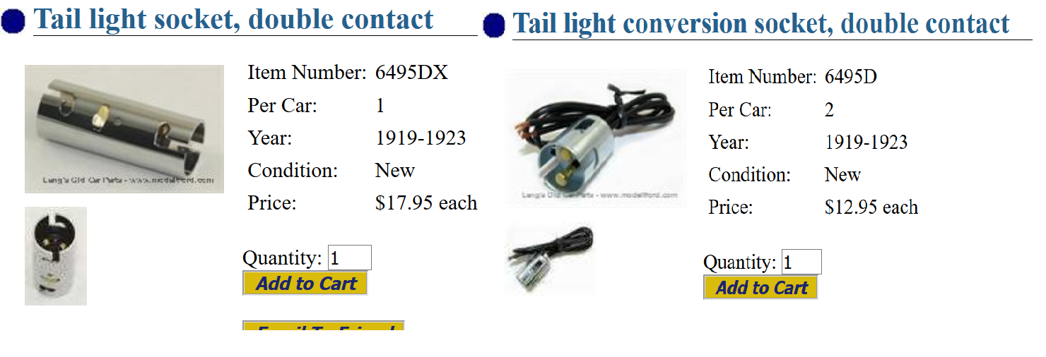 I'll share that you can achieve what you want in either 6V or 12V by going to Model A Teacup taillights. They are especially nice if you option up the stainless bezels...the basics come painted black. From 4 ft away you can't tell they are teacup style where the real-deal T were tuna-cans.