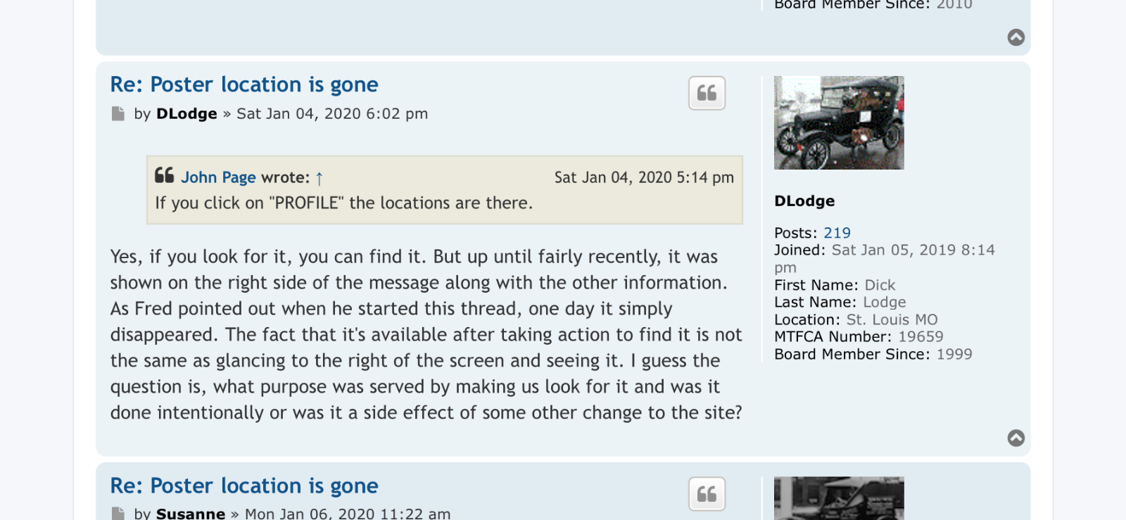 Why is the posters location no longer shown to the right of the post.