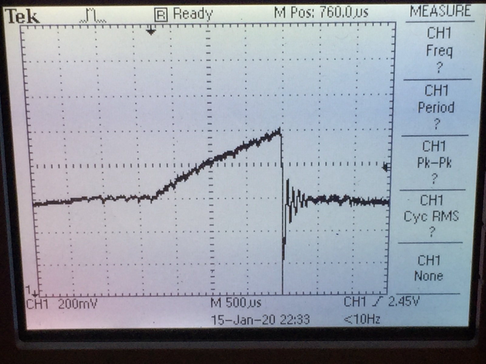 *  (3) measure time from 0 to max val (rise/ramp time)