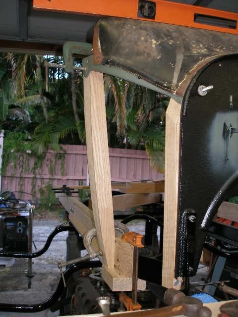 You are misunderstanding my semantics. The vertical (at least the far left/right) members must be to the passenger (originally stated "inboard") side, and the top horizontal board must be outboard or rearward, toward the sheet metal. This is what sets and creates the rigid foundation to the rear sheet metal. The little (approx) 1x1 strips are merely the tack strip for seat and top and provides little real support for sheet metal, and they are placed outside of the metal surface.