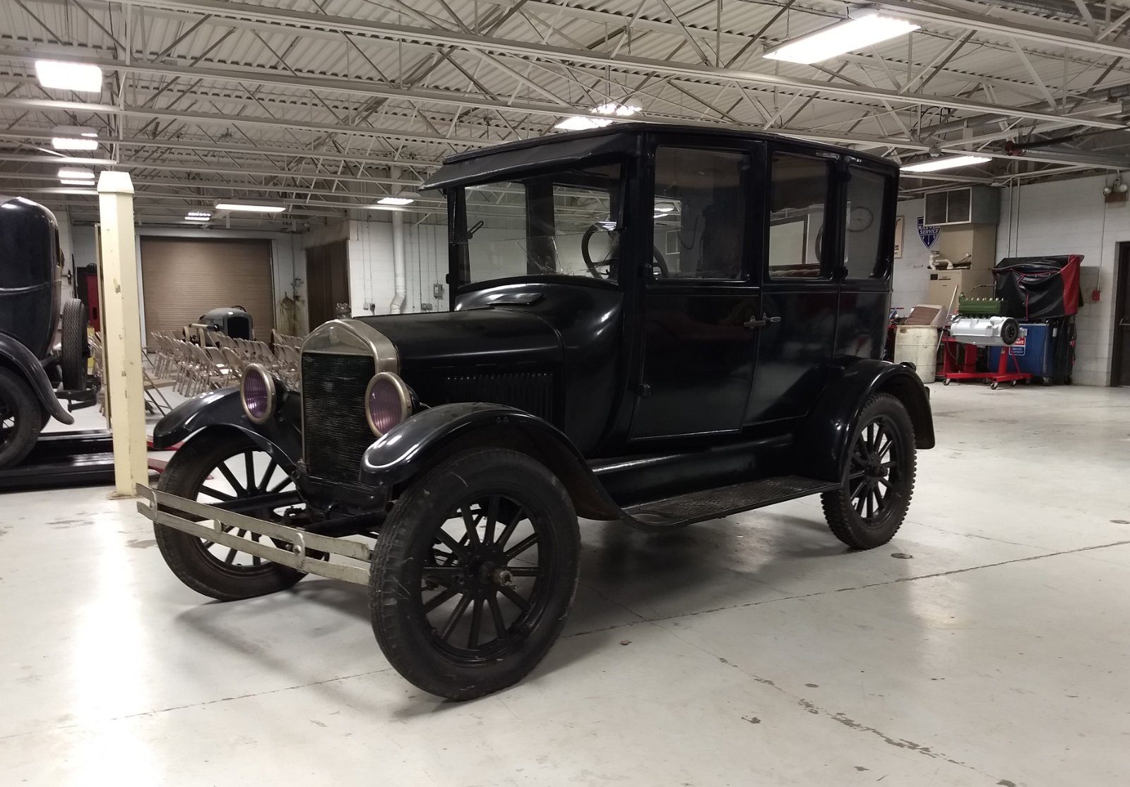 Completed projects include a 1917 Willys Knight and a 1929 Ford.
