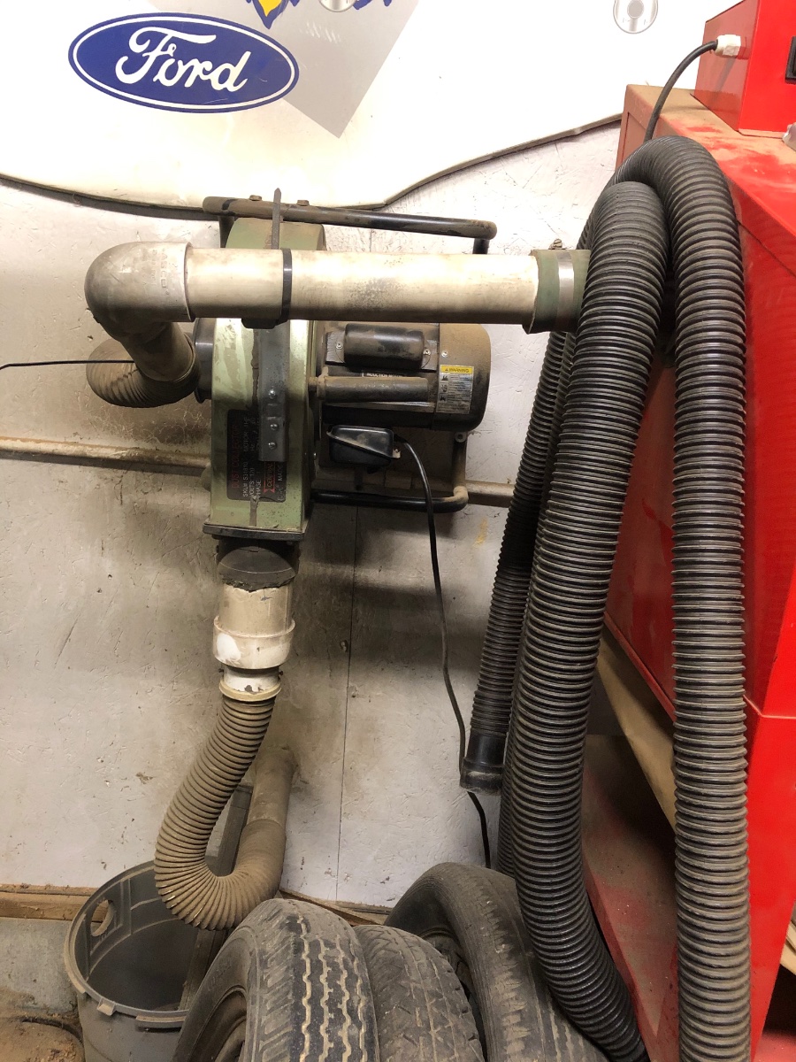 Here’s the set up I use for the sandblaster, saw dust vacuum etc. should work for exhaust fumes as well.