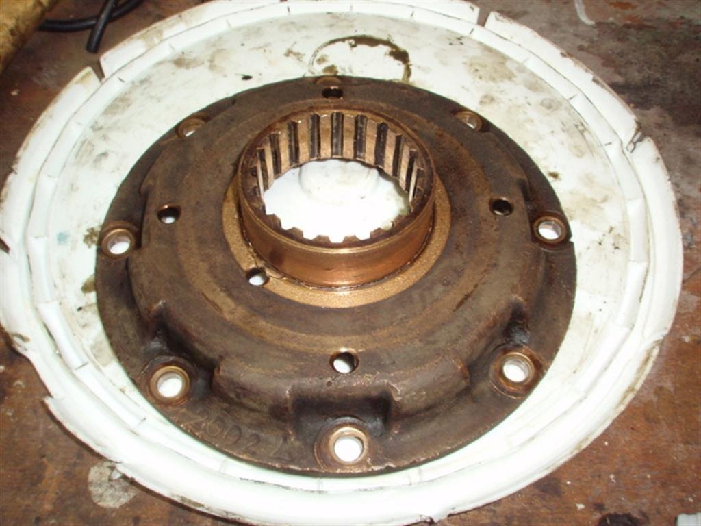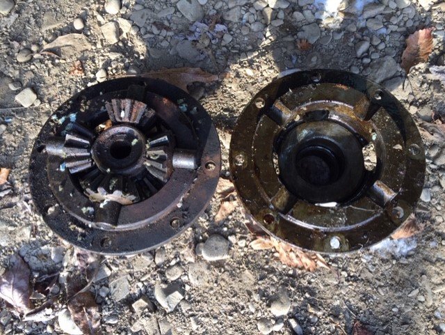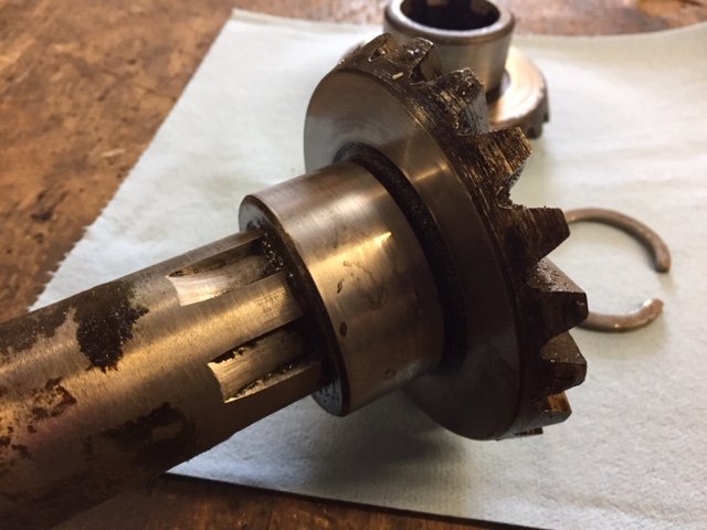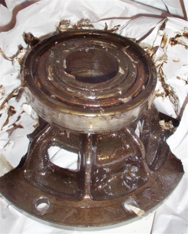 The 'cage' has its boss broken - which is seen to the right on the axle a bit. The "real" problem was the two worm Hyatts which were rusted solid which explained the reason this diff did not turn.