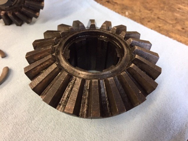 Do you see those gears that are on the ends of the axle shafts? Do you have a cleaned up picture of those gears? I need to see the teeth side straight on, the back side and a side view to get the angle...also if you've got any of the Ruckstell parts cleaned up, those would good to see too, especially the outside gear, just a straight on shot of it, so I can count the teeth.