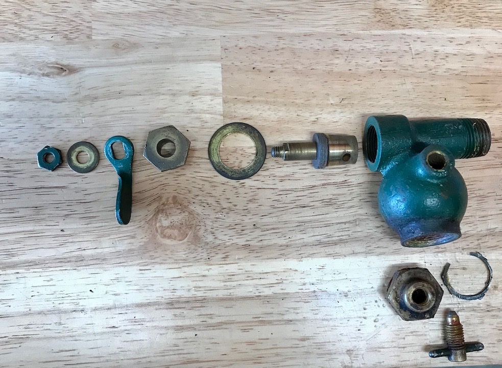 So tonight after work I started to clean up the engine pan. I took off the sight gauge and petcock. Then I took them apart and cleaned them up.