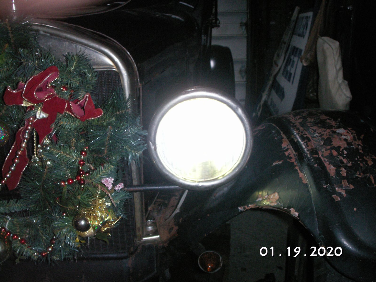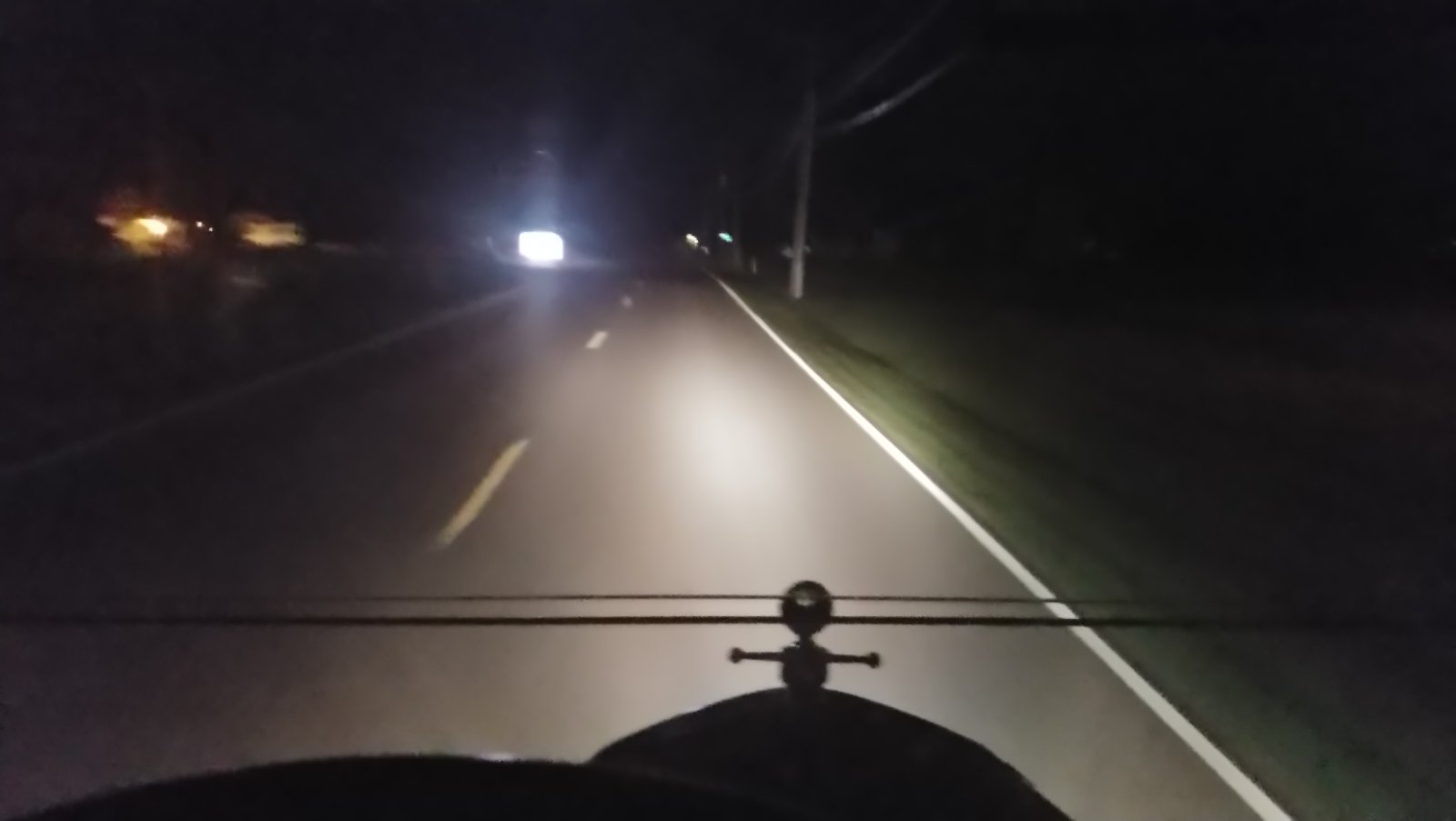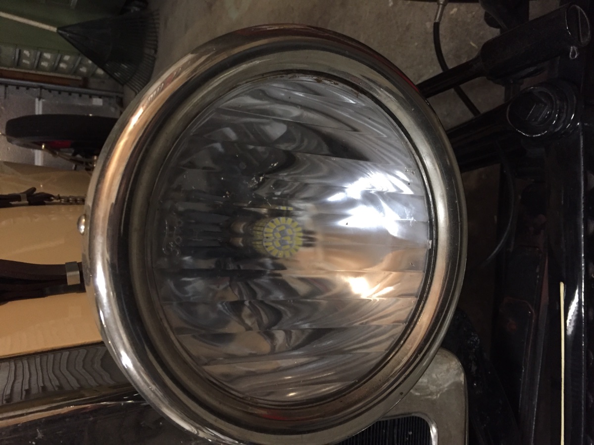 Good to know the vertical Ford H lenses cast an odd light. I have a spare set of plain clear lenses, but wouldn't want to install them since the LEDs will be even more obvious when not in use. All good insight. Below is an image I shot last summer when driving home late from work using a standard 6v lightbulb - not bad.