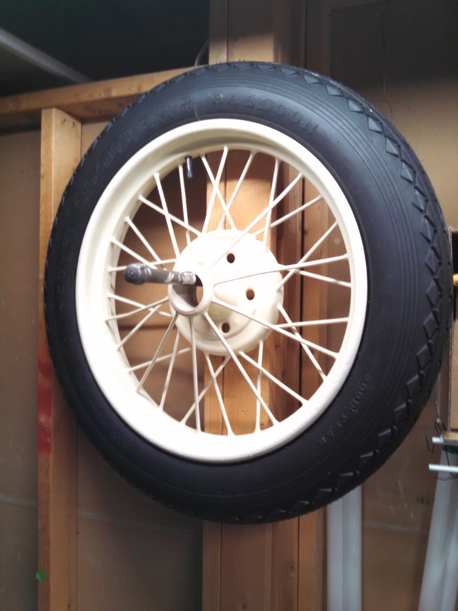 Before someone in the hobby suggested using metric tires on his IHC, my dad originally installed straight-side 36 x 5.5 Firestone Non Skid tires on the clincher rims. He installed cotton rope in the beads of the rims.