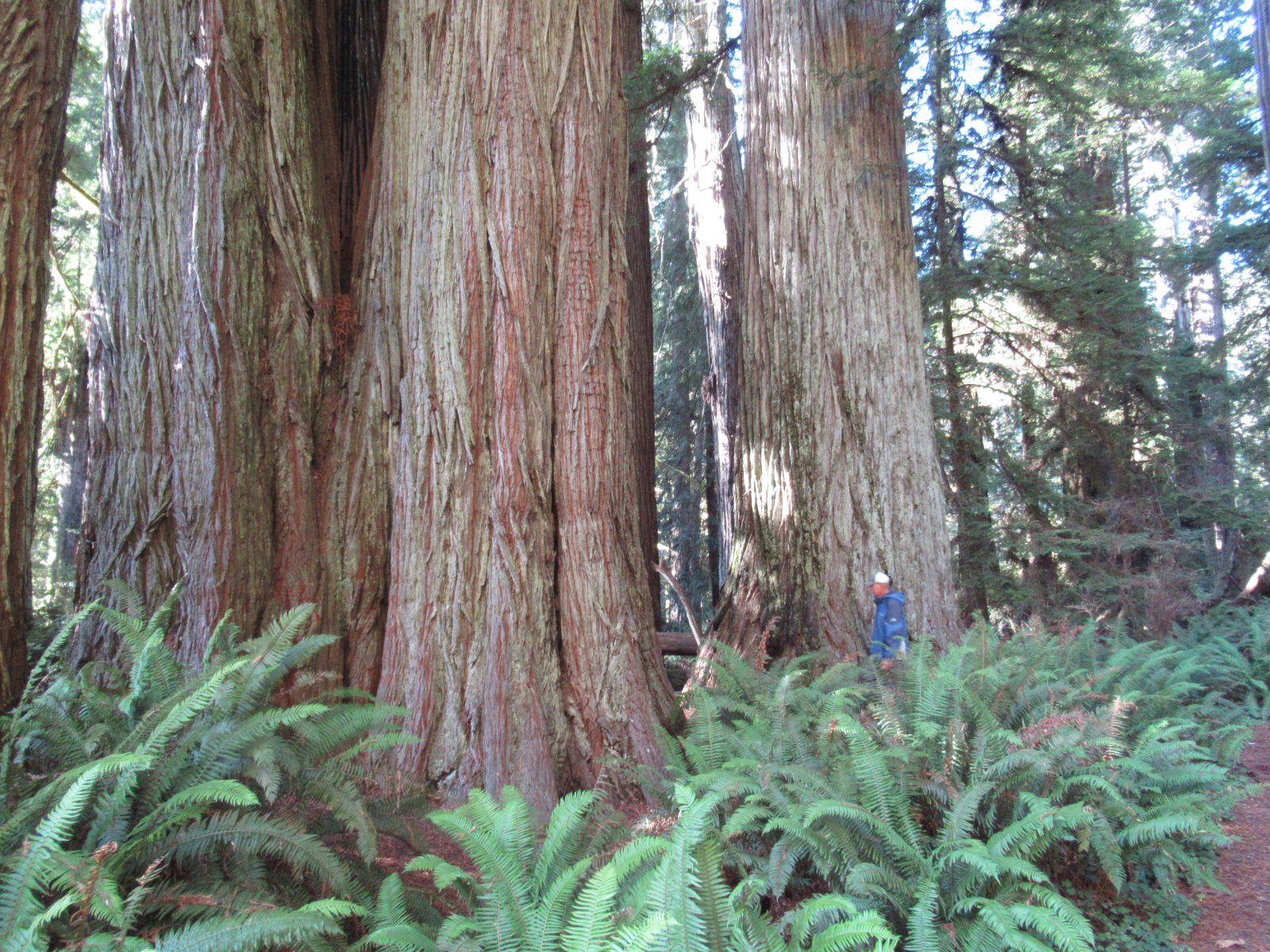 While we were asleep the power was shut off for what turned out to be days. From The Avenue of the Giants we went north up the coast and stayed at the Elk Prarie state park thankfully they were open with no power, just about everything was shut down, luckily we didn't need fuel at that point. We went for another nice drive on the Newton Drury Scenic Byway. Than we went up the coast and stopped at the Trees of Mystery, we rode the tram up through the tree tops to the top of the ridge. While at the top of the tram my wife ask a young fellow to take our picture, it turned out he was from our town (Madras) and he recognized me as the guy who let him crank start a old car at the fair, we give rides during the fair to the old homestead museum at the fairgrounds, small world. We ended up at a rv park just out of Jedediah Smith Redwoods State Park,we had time to go for a drive out another special road (Howard Hill Road) that weaves through the giant trees to a grove of trees were we went for a hike. What a peaceful place to drive a old open car.