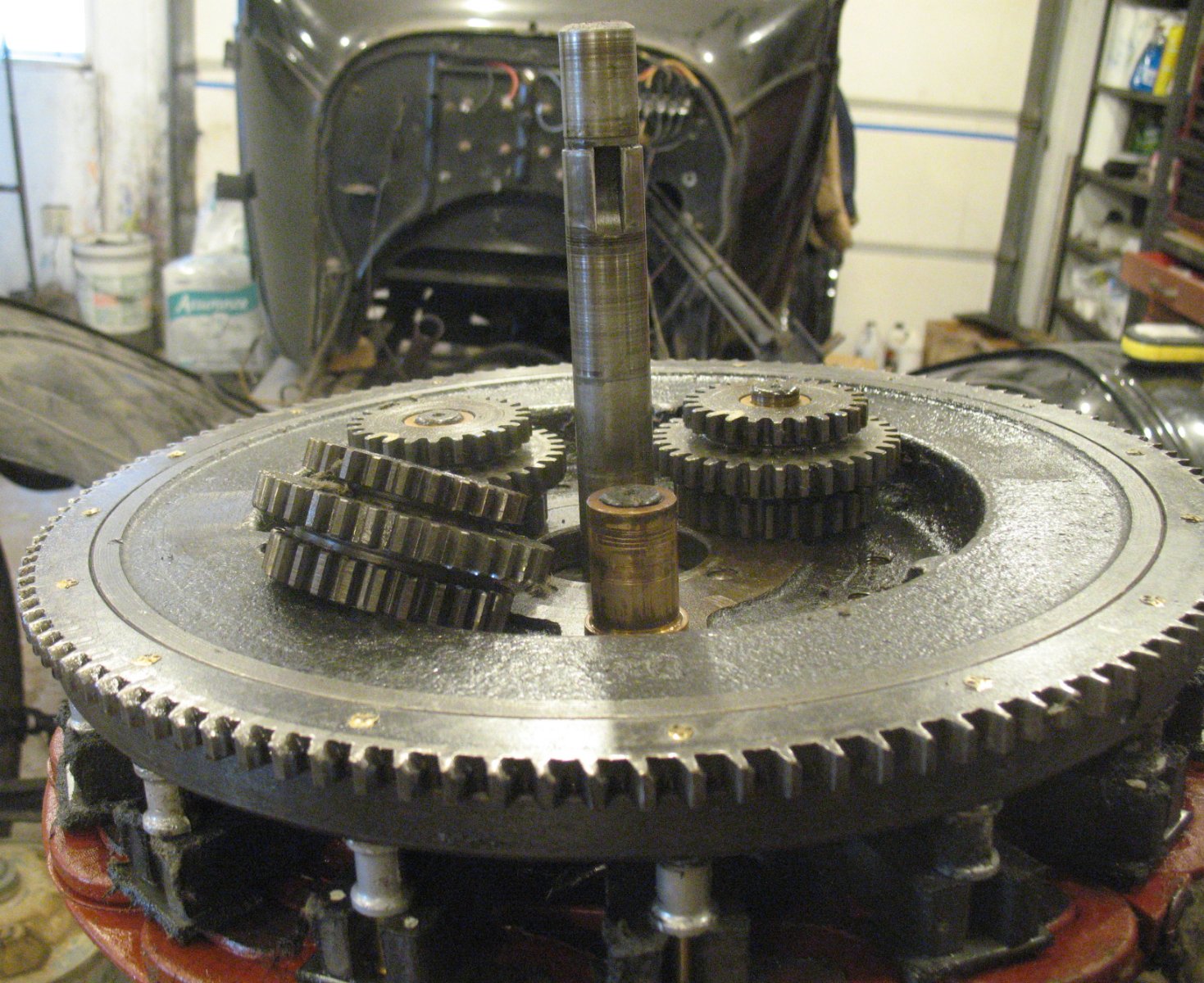 Even when I asked if the flywheel is toast I was pretty sure of the answer. Fortunately I have a few others, so finding a replacement should not be a problem. I also have several low drums, so it should also be no trouble finding a better gear. I believe this hogshead has a new low pedal notch and cam, but it's been over two years since the work was done, so I'll check to be sure.