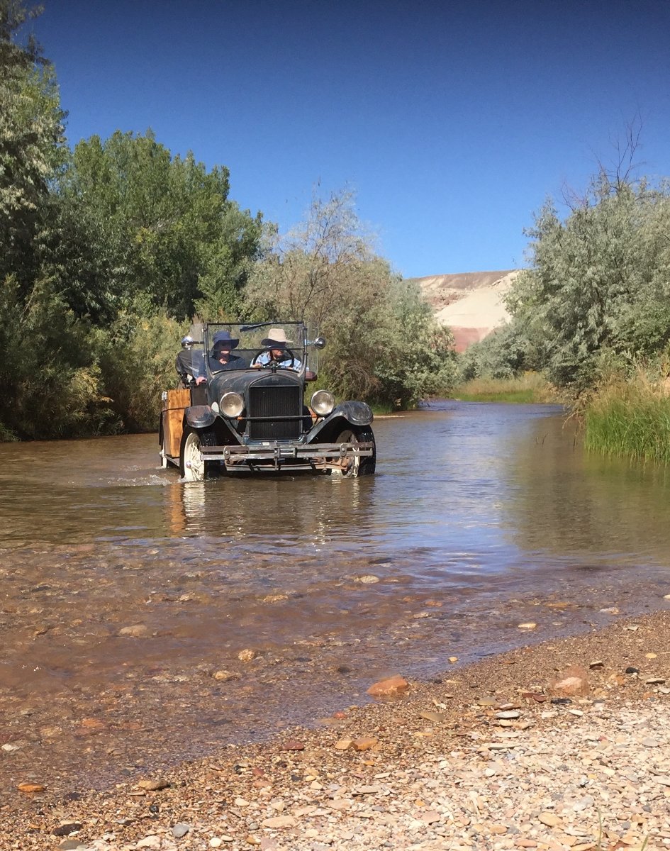 Finally got caught up on things and have time to post about our trip. There were 3 Ts and 5 people, we took motor homes and towed the cars from place to place and then drove the back roads. We put 4,150 miles on the motor homes and close to 2,000 miles on the Ts, went to 13 National parks, 8 National Monuments and 14 state parks in Oregon, Nevada, Utah, Colorado, Arizona and California in 51 days. About 60 to 70% of the T driving was on dirt, gravel or less. We did an amazing amount of driving in creek beds. The cars are a 26 roadster pick up (early, titled as a 25), 26 roadster and a 27 roadster pickup. In 51 days I never had to put up my top, the others put theirs up for the shade. Our route took us from Central Oregon down into Northern Nevada and then down to Hwy 50 and across Nevada to Great Basin National Park, we drove to cars up to 10,000 feet on Wheeler Peak and then out a dirt road to Lexington Arch, about a mile and a half of the road was washed out so we drove in the creek bed and made it to the trail head, by then it was to hot to hike to the arch so we drove back out and back to our camp out in the desert. This is going to take a number of post to tell the story and show some of the pictures. (and I am a really slow typest)