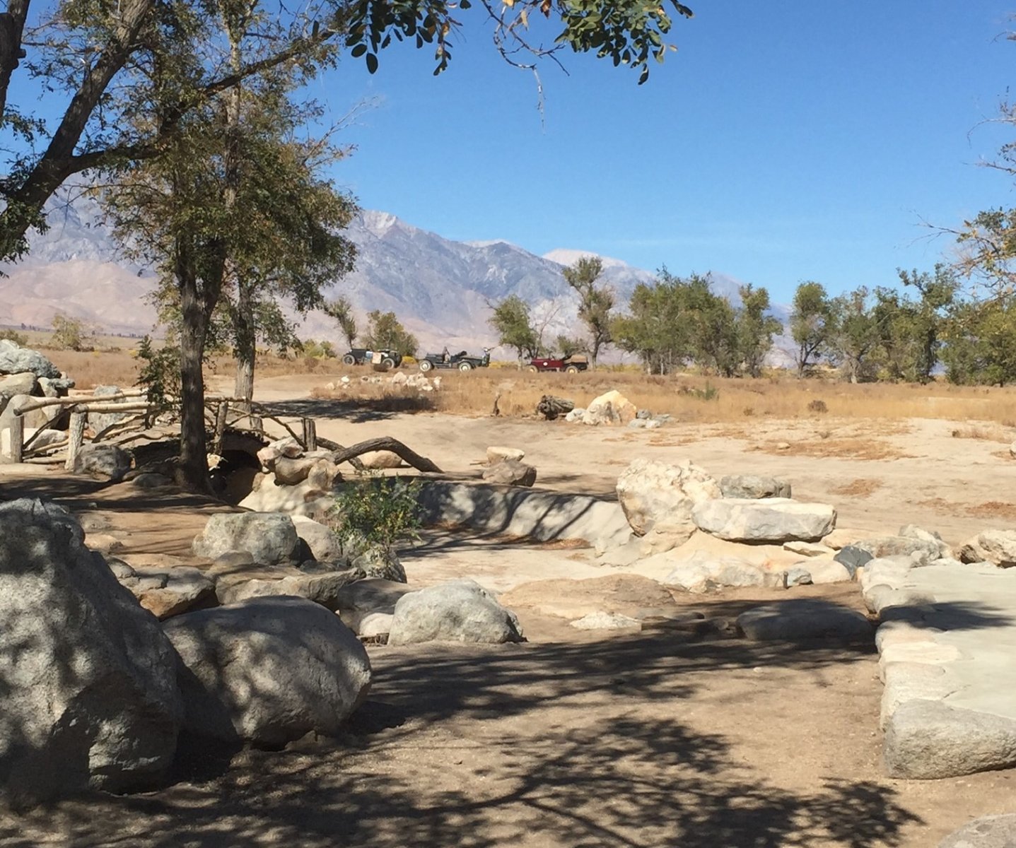 From Death Valley we headed to the Alabama Hills out of Lone Pine California. This is where a lot of the old black and white cowboy movies were shot, I wanted to go here ever since I was a kid, I just didn't know where it was. It is another unique area of rock formations, if you watch enough old movies you even recognize some of the rocks. In town there is a really nice western movie museum, while we were there one of our group ask if an old collage room mate of his that was from Lone Pine still lived in the area, it turns out that he is on the board of directors for the museum and lived about a 1/2 mile away. We went to his place and he was there, they hadn't seen one another in years and it turns out that his grandfather was the person that rented props to the movie people, such as livestock, wagons and ranch locations. We had a very nice visit with him. The following day we went to Manzanar National Historic Site, it is the site of one of the WW 2 Japanese Relocation Centers. I knew a little about these camps but it was very enlightening and humbleing. I recognized a name on the roster, a good friend growing up, there were 24 people there with the same last name, that his family would have been inturned never entered my mind. There is not much left of the camp but it is well worth a visit. When we got back to the Alabama Hills, I spent some time driving around through the rocks playing cowboy, I was the good guy (of course). We didn't spend near enough time here, I will be back.