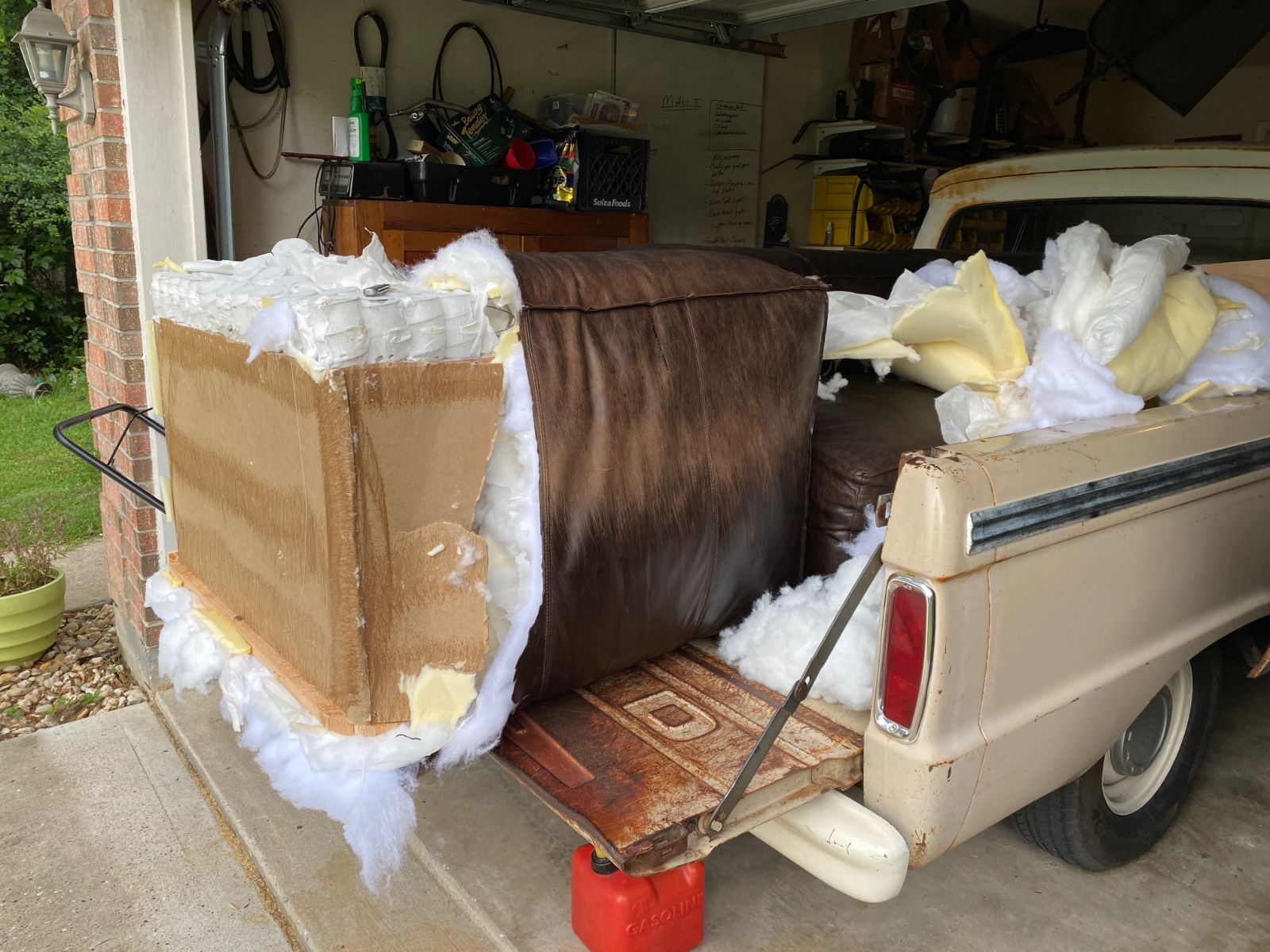 More upholstery work on the T....using the old leather couch that I scrounged, for the material.
