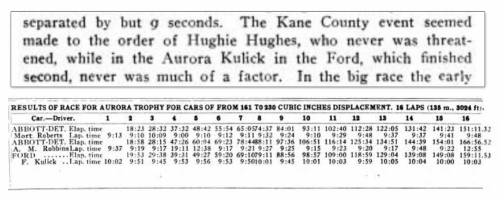 As this excerpt from “Automobile” along with stats read, Kulick and the stock Ford weren’t a factor in the race. At just over 135.6 miles, the Ford finished 2nd out of 3, and averaged about 50 mph: