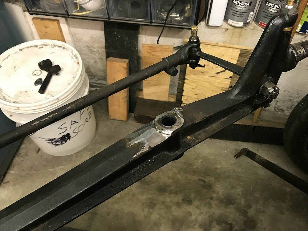 Finally finished making the '13's front axle assembly correct & safe. Replaced welded spring perch, repaired axle where the welds hit it and carefully hid the repair as to only alter the original axle enough to make it right. Replaced front spring to correct tapered leaf spring assembly. Tightened up play in drag link, tie rod, & pitman arm. Repaired worn shackles. New king pins, and new tie rod pins, all new bushings! DONE! I'm glad I got this done sooner than later. The broken spring perch welded in to place could have been a death sentence! Glad I spotted it! It was very unnoticeable under the Hassler shocks.