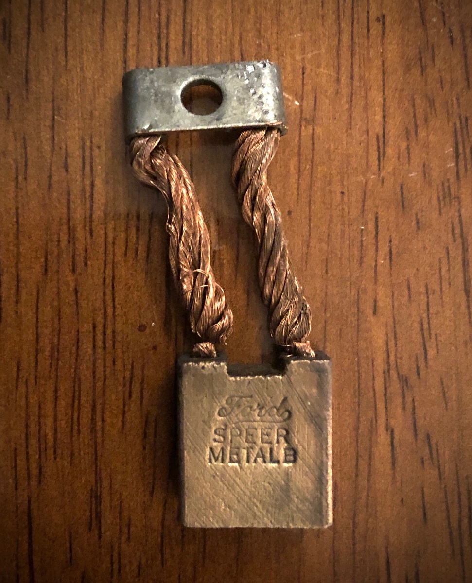 Thanks for that story. Very interesting. Yes, I think it’s too strong and although it works fine as far as running smoothly I’ll take it out of there. Last night I went through my electrical stuff and found a generator brush that I cut down to fit the old brush housing I have. Will try it out after I find the right ball point pen spring.
