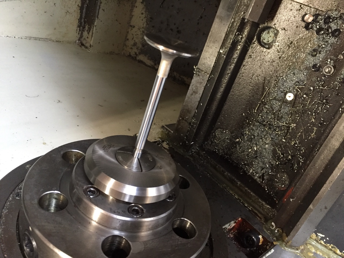 Got the bolt bosses faced to a common height so that the rocker sub plate doesn’t get twisted when torqued down. Also the valve guide bosses were trimmed to clear the stock T springs. Made spacers to shim the springs to the correct compression height. Drilled and reamed the epoxy plugs for new push rod guides. And started turning the new bronze push rod guides. Will need to sand and blend the epoxy plugs to match the port floors prior to pressing in the push rod guides