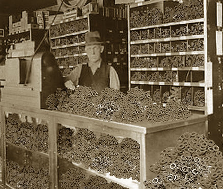 At first we thought it was Norbert behind the counter. However his Niece suggests it is his Brother Bertnor. During the flood they ran low on 5/8 and had to wire for additional.