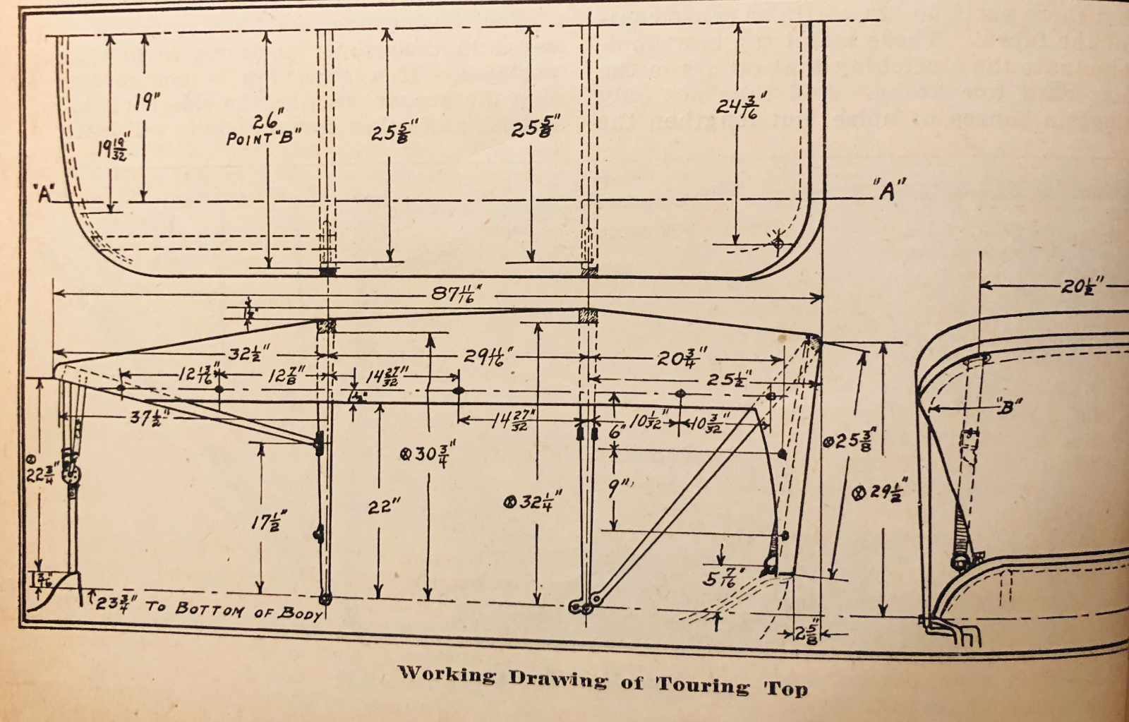 This sketch is from Feb. 1922 Ford Owner Dealer, so likely a sketch of the touring tops of 1920-1922 so it should be helpful. Dimensions from center lines.