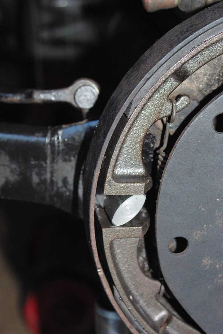 One other more effective handbrake fix is to fit the shoes to have minimum clearance between the shoes and drum so that the lever when pulled back immediately spreads the shoes. This means the lever of the cam is in the most rearward and effective position, if a slotted clevis yoke is used the rods can be adjusted so the handbrake lever pulls immediately after neutral position but the clevis pin slides back along the slot as the handbrake is moved forward.