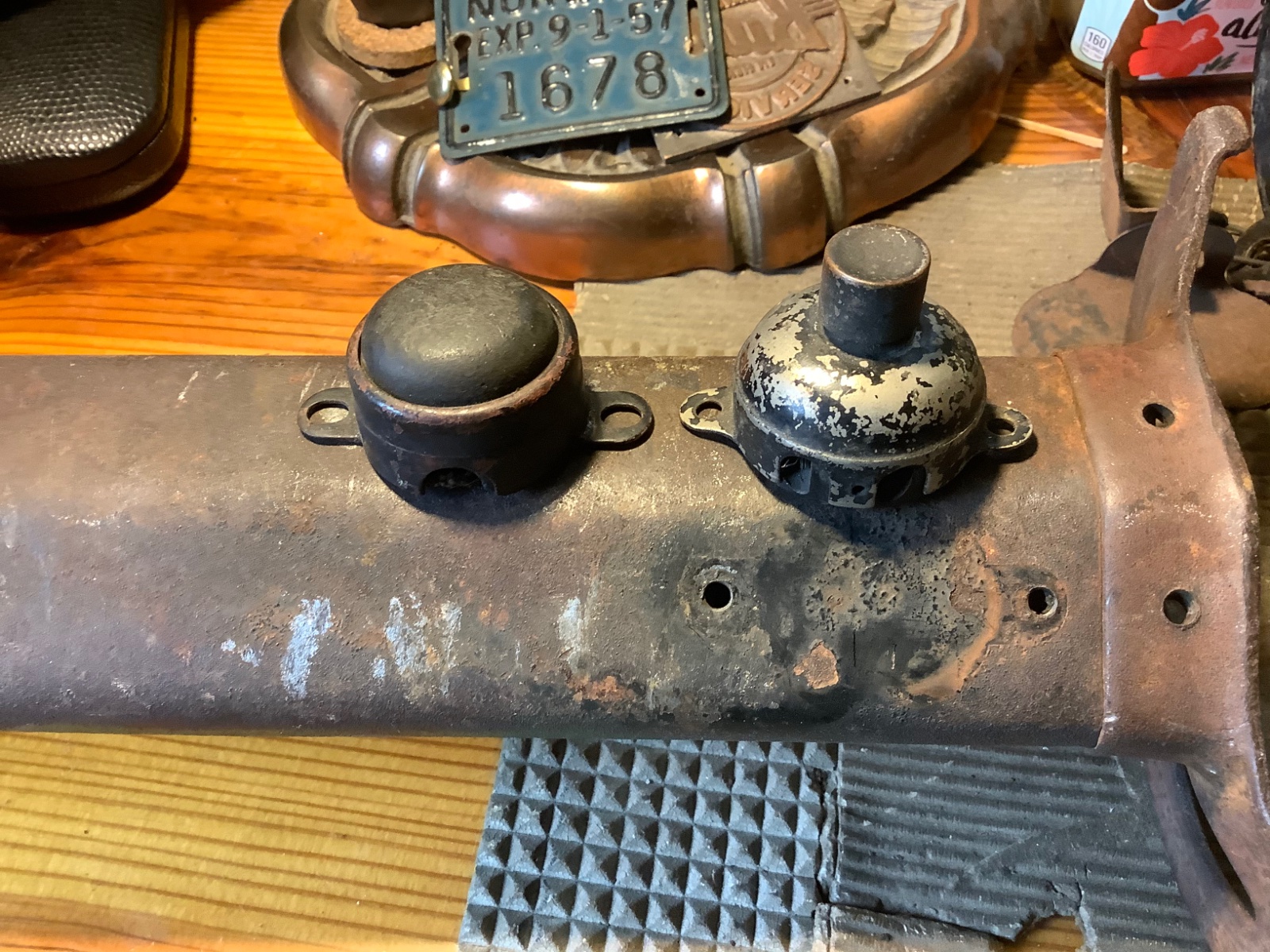 In your bottom picture, the rightmost button is the one located on the steering post of my ‘26 coupe pointed to the left. Don’t know about the ones in the top photo. Jim Patrick