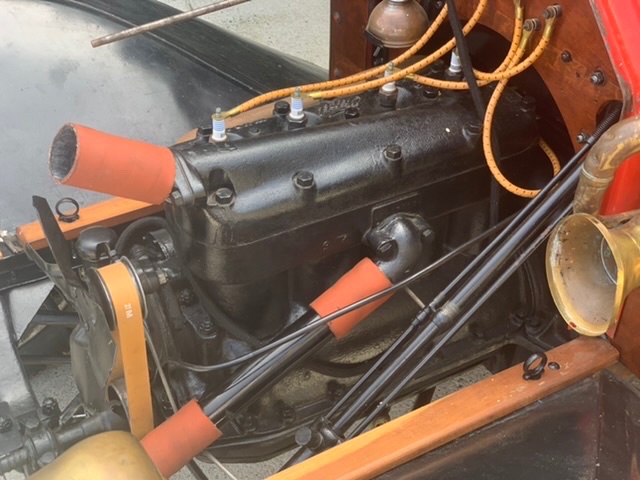 Well one thing that jumps out, and it's really not all that bad, as they are stronger, is that the pan looks to be the later wide-nose pan. Like I said, not the end of the world. Interesting that the horn is under the hood, I guess some were, maybe depending on the model year. That said, even if it is under the hood, I wonder if it still should be black and brass, as the horns on the outside were. Of course the generator is really a "stand out", as being a "crank start" car, they never came with them. So now this must be a later engine, which would explain more about the pan. Took me a couple of extra looks to see that!! Hey, a genny on even an earlier car aint all bad! Never have to worry about your battery dying I suspect. Whats the engine number on the block? Both the assembly number as well as the casting date? Just curious.