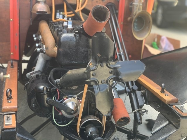 Well one thing that jumps out, and it's really not all that bad, as they are stronger, is that the pan looks to be the later wide-nose pan. Like I said, not the end of the world. Interesting that the horn is under the hood, I guess some were, maybe depending on the model year. That said, even if it is under the hood, I wonder if it still should be black and brass, as the horns on the outside were. Of course the generator is really a "stand out", as being a "crank start" car, they never came with them. So now this must be a later engine, which would explain more about the pan. Took me a couple of extra looks to see that!! Hey, a genny on even an earlier car aint all bad! Never have to worry about your battery dying I suspect. Whats the engine number on the block? Both the assembly number as well as the casting date? Just curious.